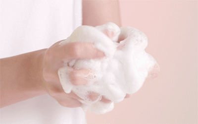 샤워타올이나 손에 적당량을 덜어 충분히 거품을 낸 다음