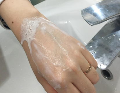 손바닥으로 충분히 거품을 내어 꼼꼼하게 핸들링해준 후 미온수로 헹구어줍니다.