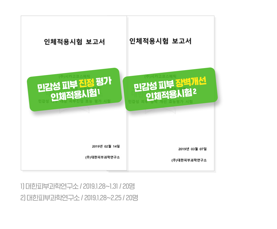 1. 민감성 피부 진정 평가 시험 / 대한피부과학연구소 / 2019.1.28~1.31 / 20명