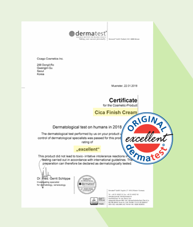 독일 더마테스트(dermatest)에서 엑설런트 등급을 받았습니다.