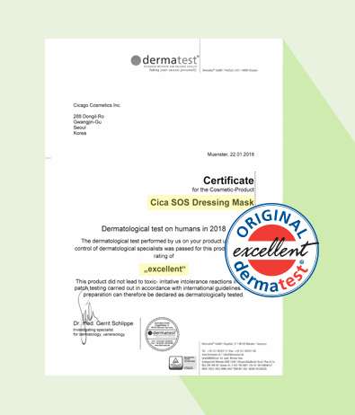 독일 더마테스트(dermatest)에서 엑설런트 등급을 받았습니다.