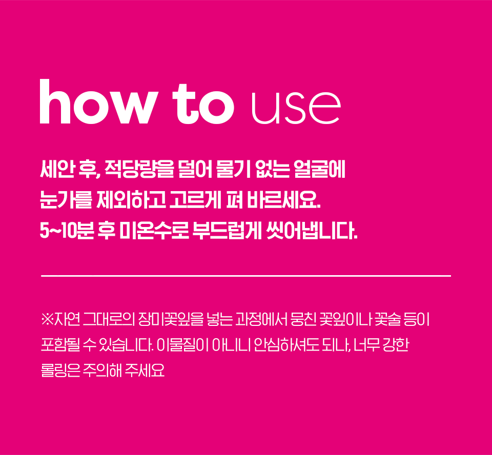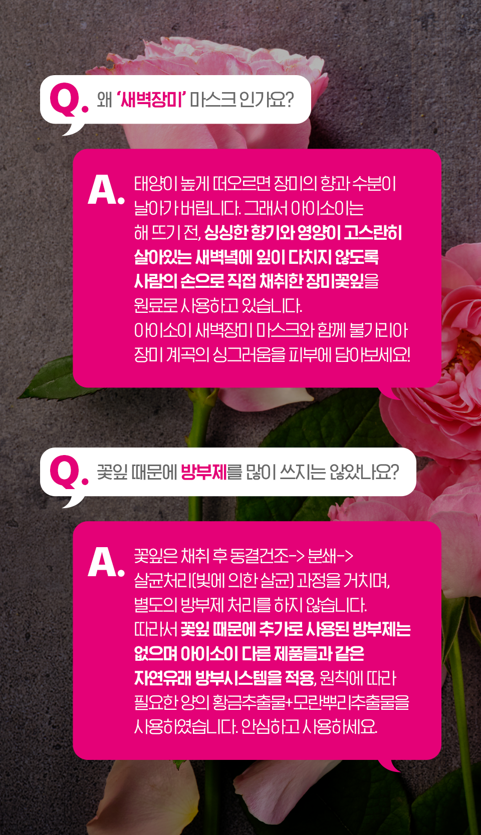 새벽에 갓 딴 어린 장미의 영양을 그대로 담았습니다.