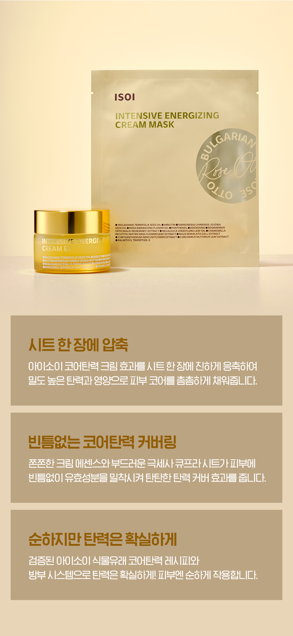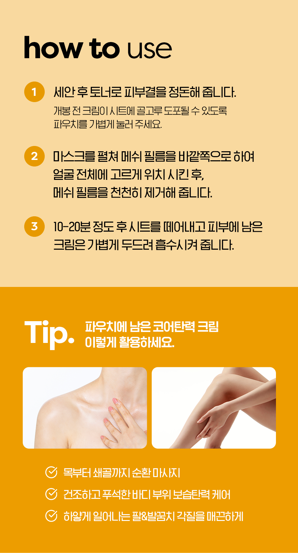 코어탄력크림 효과를 한 장의 마스크로 경험하세요.
