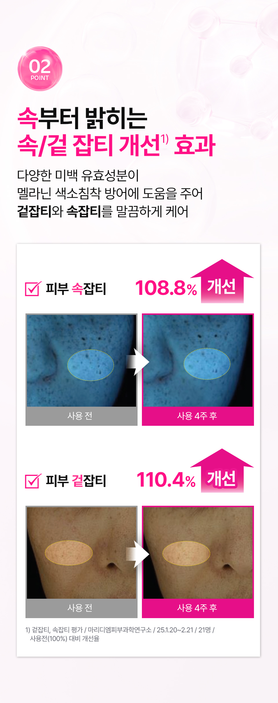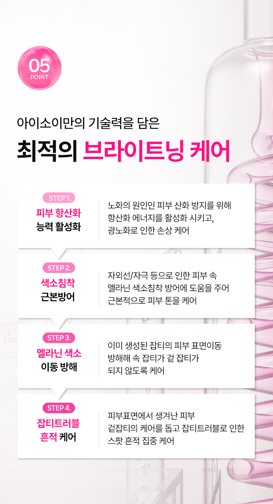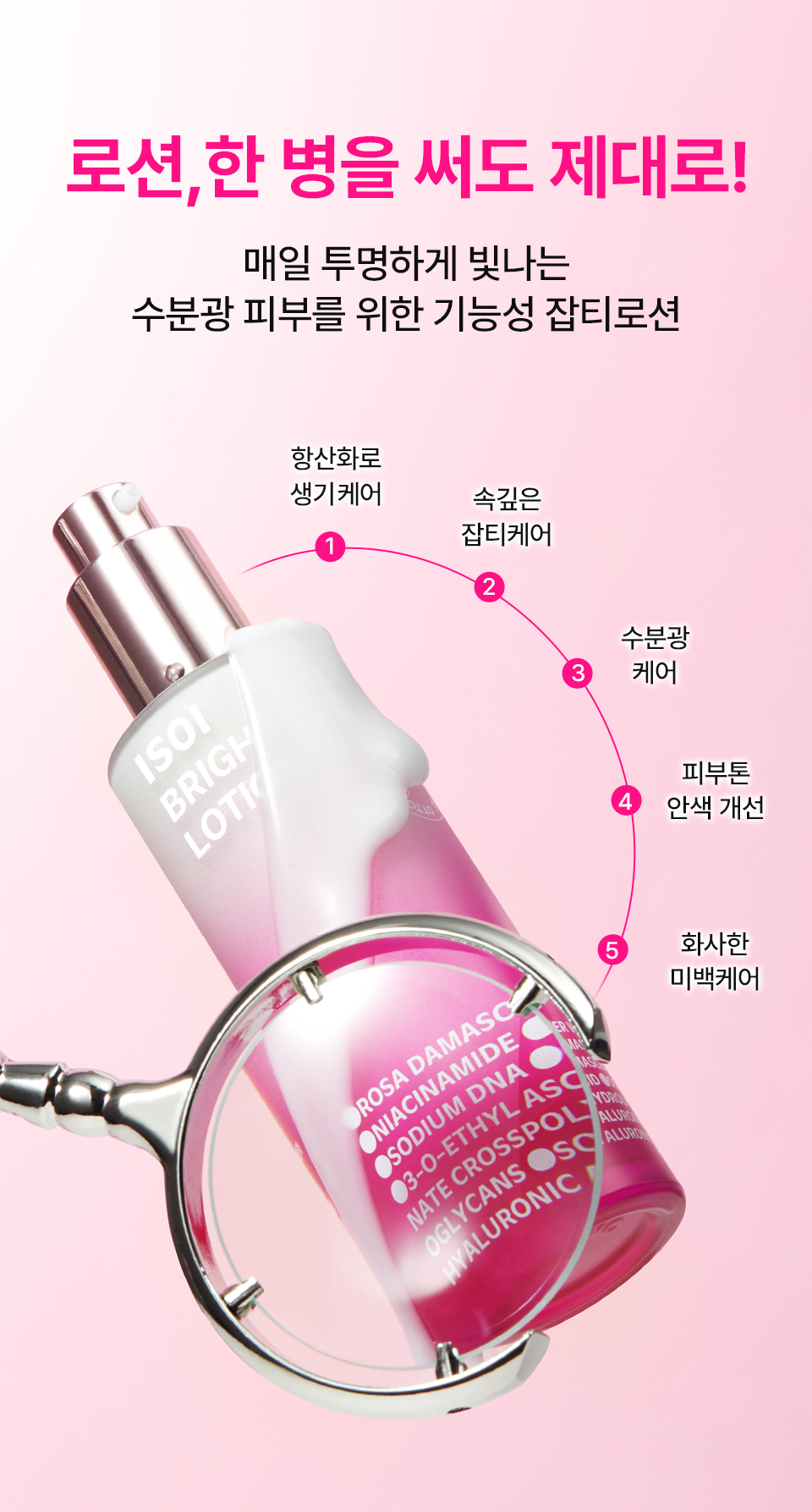 정제수, 글리세린, 에탄올(식물발효), 알부틴, 나이아신아마이드, 세틸에틸헥사노에이트, 카프릴릭/카프릭트라이글리세라이드, 마카다미아씨오일, 다마스크장미꽃수, 스테아릭애씨드, 펜타에리스리틸테트라에틸헥사노에이트, 베타인, 트레할로오스, 다마스크장미꽃오일(불가리아 공인), 소듐디엔에이, 다마스크장미꽃추출물, 3-O-에틸아스코빅애씨드, 아라키딜알코올, 베헤닐알코올, 아라키딜글루코사이드, 잔탄검, 소듐하이알루로네이트크로스폴리머, 하이드롤라이즈드글라이코사미노글리칸, 소듐하이알루로네이트, 하이드롤라이즈드하이알루로닉애씨드, 하이알루로닉애씨드, 약모밀추출물(어성초추출물), 밤껍질추출물, 흰버드나무껍질추출물, 병풀추출물, 부틸렌글라이콜, 고삼뿌리추출물, 비타민나무열매추출물, 아사이팜열매추출물, 로우스위트블루베리추출물, 인디안구스베리열매추출물, 크랜베리추출물, 프로판다이올, 1,2-헥산다이올, 포트마리골드꽃추출물, 황금추출물, 모란뿌리추출물, 스페인감초뿌리추출물, 시트로넬올※, 제라니올※ ※식물유래 에센셜오일 자체에 원래 포함된 성분